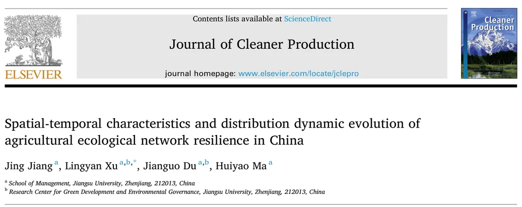 这篇文章《中国农业生态网络韧性的时空特征与分布动态演化》由Jing Jiang、Lingyan Xu等人撰写,发表于《Journal of Cleaner Production》2025年第535卷,系统揭示了2000–2023年中国农业生态网络韧性的多维度演化机理与分布动态规律。以下是对文章的点评与总结: