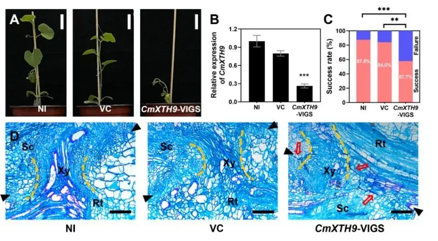 沉默甜瓜CmXTH9对甜瓜/葫芦嫁接愈合的影响