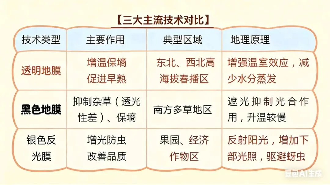 核心原理:用地膜覆盖土壤表面,改变地表微环境。