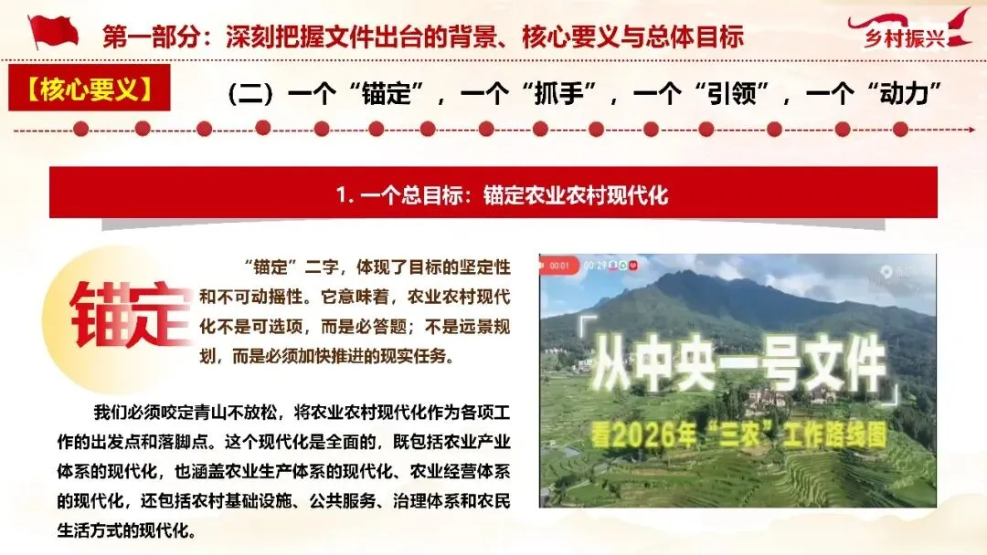 >119党课讲稿:锚定农业农村现代化,扎实推进乡村全面振兴,深入学习领会2026年中央一号文件精神宣讲专题党课