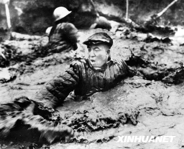 在大庆会战初期,“铁人”王进喜为了保住钻机,不顾左腿重伤跳进泥浆池,用身体搅拌泥浆,奋战3个多小时制服井喷(资料照片) 来源:新华社