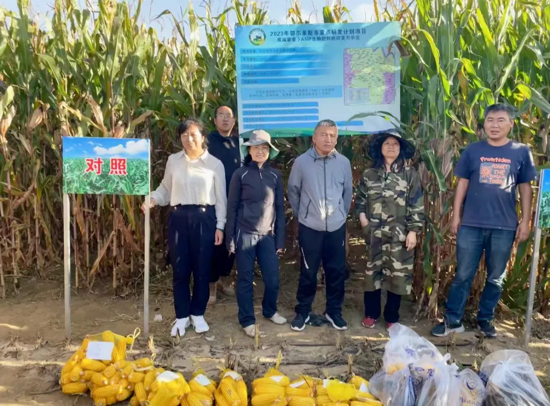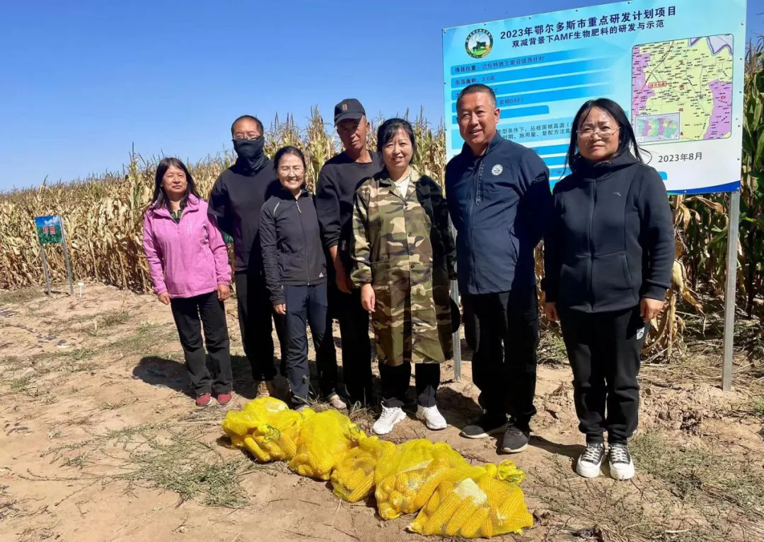 生物肥料的示范推广是提高土壤质量,推进农业绿色发展,促进质量兴农,落实生态文明建设的重要举措。2023年,由鄂尔多斯市农牧技术推广中心牵头,联合内蒙古农业大学,实施鄂尔多斯市重点研发计划——“双减背景下AMF生物肥料的研发与示范”项目。项目执行周期为2023年6月至2025年6月,主要针对鄂尔多斯市耕地盐碱化沙化等突出问题,开展不同土壤类型条件下AMF生物菌肥研发,旨在确定最佳接种方式、施用时期、施用量和复配方法等关键核心技术,并集成适宜沙化和盐碱化耕地的配套技术,加以示范推广。