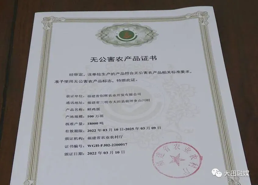 创辉生态农业发展负责人介绍,公司刚刚完成无公害农产品续证,目前公司存栏蛋鸡40万羽,日产鸡蛋20吨。项目完全建成后,可实现存栏蛋鸡150万羽,年产无公害鸡蛋2.97万吨,实现年产值3亿元,税收800万元。现在,公司生产的“松针鸡蛋”广受消费者青睐。好的品牌效应,得益于大田县农业农村局在品牌建设方面的精心指导。