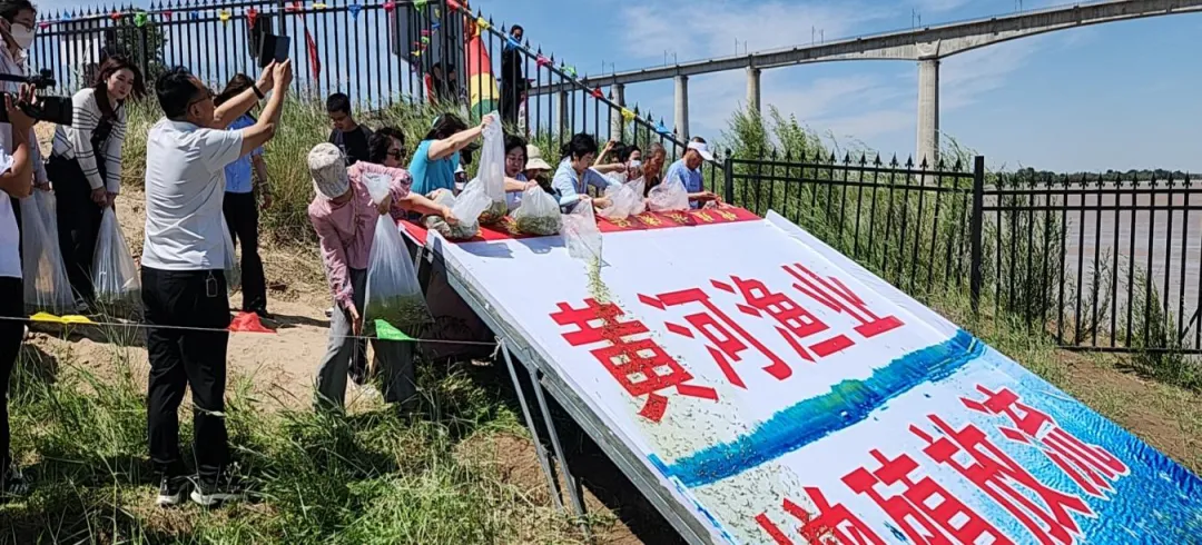 活动现场,热闹非凡且秩序井然。众多志愿者和相关部门工作人员怀着满腔热情共同参与到增殖放流的行动中来。只见工作人员熟练地打开一袋袋装满鱼苗的袋子,一尾尾活泼的鱼苗顺着水流欢快地游入黄河之中。这些鱼苗种类丰富多样,有鲢鱼、鳙鱼、黄河鲤鱼等共计1224千克,约281.5万尾。这些都是经过精心挑选,适应黄河水域环境的优良品种。
