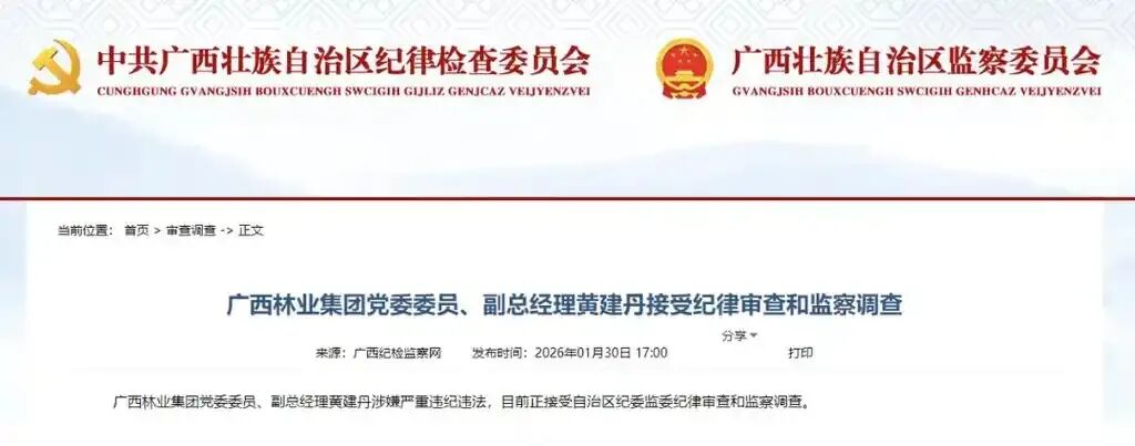 根据广西林业集团2024年度企业负责人薪酬公示,黄建丹当年税前报酬合计41.75万元,其中应付年薪33.38万元,社会保险、企业年金等单位缴存部分8.37万元,无其他货币性收入。这一薪酬水平在广西本地国企高管中处于中上游水平,本是对其专业能力与岗位职责的认可,却未能约束其廉洁行为。短短两年时间,这位本应守护“绿水青山”、推动林业产业高质量发展的国企高管,便因涉嫌严重违纪违法被查,职业生涯戛然而止。