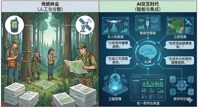 展望未来,大语言模型在林业领域的应用将远不止于简单的信息查询和文本生成。随着人工智能技术的不断演进,我们正迈向一个由“林业智能体(Forestry Agent)”驱动的智慧林业新时代。