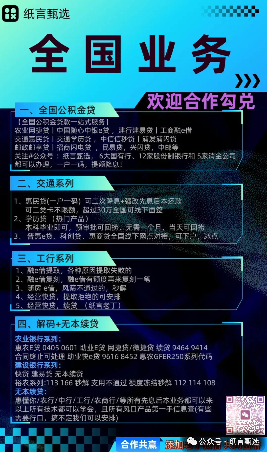 如果你有需求,或者银行经理、贷款中介想合作,或打算自媒体助贷转型、全国线上业务需要勾兑的,我们可以聊一聊(+V):zhiyanzx818