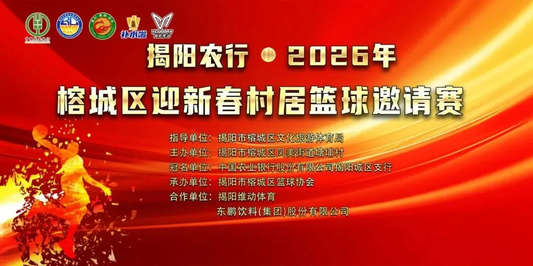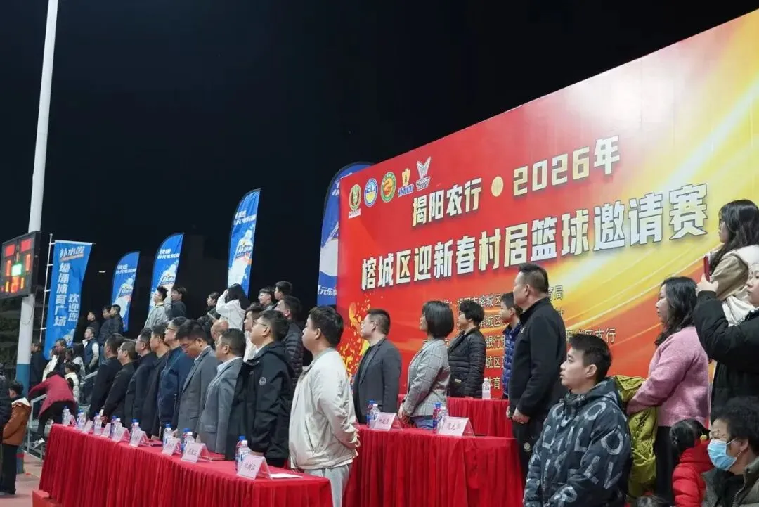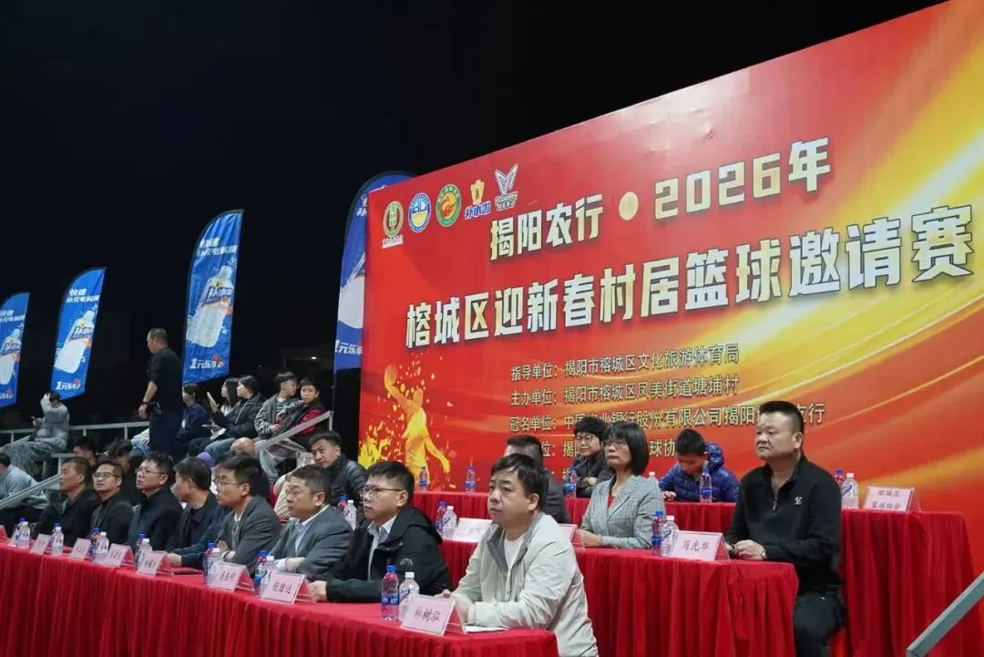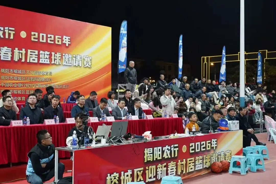 由榕城区文化旅游体育局指导,凤美街道塘埔村主办,揭阳市榕城区篮球协会承办、中国农业银行股份有限公司揭阳城区支行(揭阳农行)冠名,揭阳维动体育、东鹏饮料(集团)股份有限公司支持的揭阳农行·2026年榕城区迎新春村居篮球邀请赛2月3日在塘埔体育广场隆重开幕!