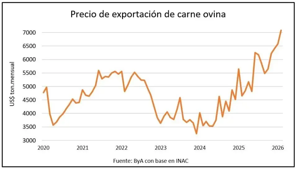 根据乌拉圭国家肉类协会(INAC)发布的数据,2026年1月该国羊肉出口平均价格达每吨7,081美元,较去年同期上涨25%,首次月度均价突破7,000美元大关。当月出口量1,046吨,创收704.8万美元。羊肉价格较牛肉高出约1,000美元,保持市场优势。主要出口目的地为巴西、海湾地区及以色列,合计占75%出口量和86%收入。但受供应减少影响,出口总额同比下降19%,出口量下滑35%;除阿联酋和阿曼外,对中国、欧盟及以色列出口均减半以上。1月羊只屠宰量创逾20年新低,凸显行业供应紧张态势。