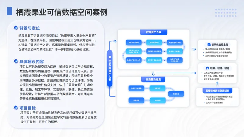 这一样板的关键不在“做了一个平台”,而在于把可信数据空间当作县域果业的数智化基础设施,把治理、资产化、协同运营、金融服务串成可跑通的闭环链路: