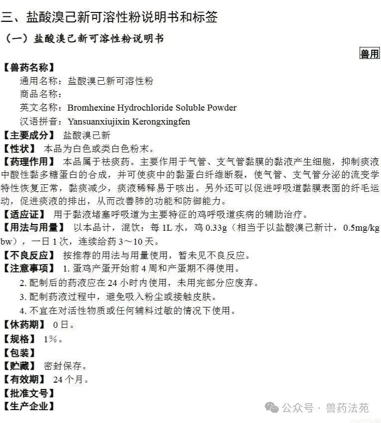 兽药产品“盐酸溴已新可溶性粉”,其产品标签说明书标注“0休药期”,有人对该药用于蛋鸡存在异议。于是,最近农业农村部针对盐酸溴己新可溶性粉对休药期0日和蛋鸡产蛋开始前4周和产蛋期不得使用的解析。