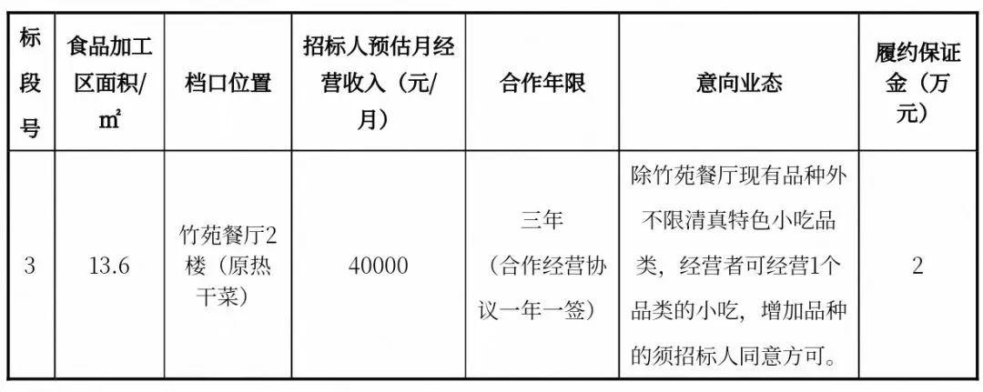 1.1项目名称:云南西南林业大学后勤服务有限公司竹苑餐厅、樟苑餐厅特色餐饮档口合作经营项目(二次)(3标段)。