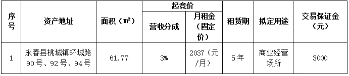 20260225(周三)永春县林业局资产招租项目公告