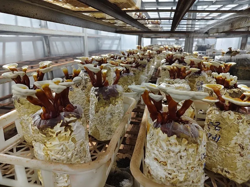 调研组首先考察了热带食药用菌课题组试验菇房,实地察看菌菇培育及林下种植情况。张春霞研究员详细介绍了牛肝菌、灵芝、猪肚菌等珍稀食用菌的培育进展与生长特性。双方重点围绕表现优异的“凤凰木林下暗褐脉柄牛肝菌”种植模式展开交流。该模式在生态适应性、产出稳定性、经济效益及对林地生态友好性等方面表现突出,具备较好的示范推广潜力。