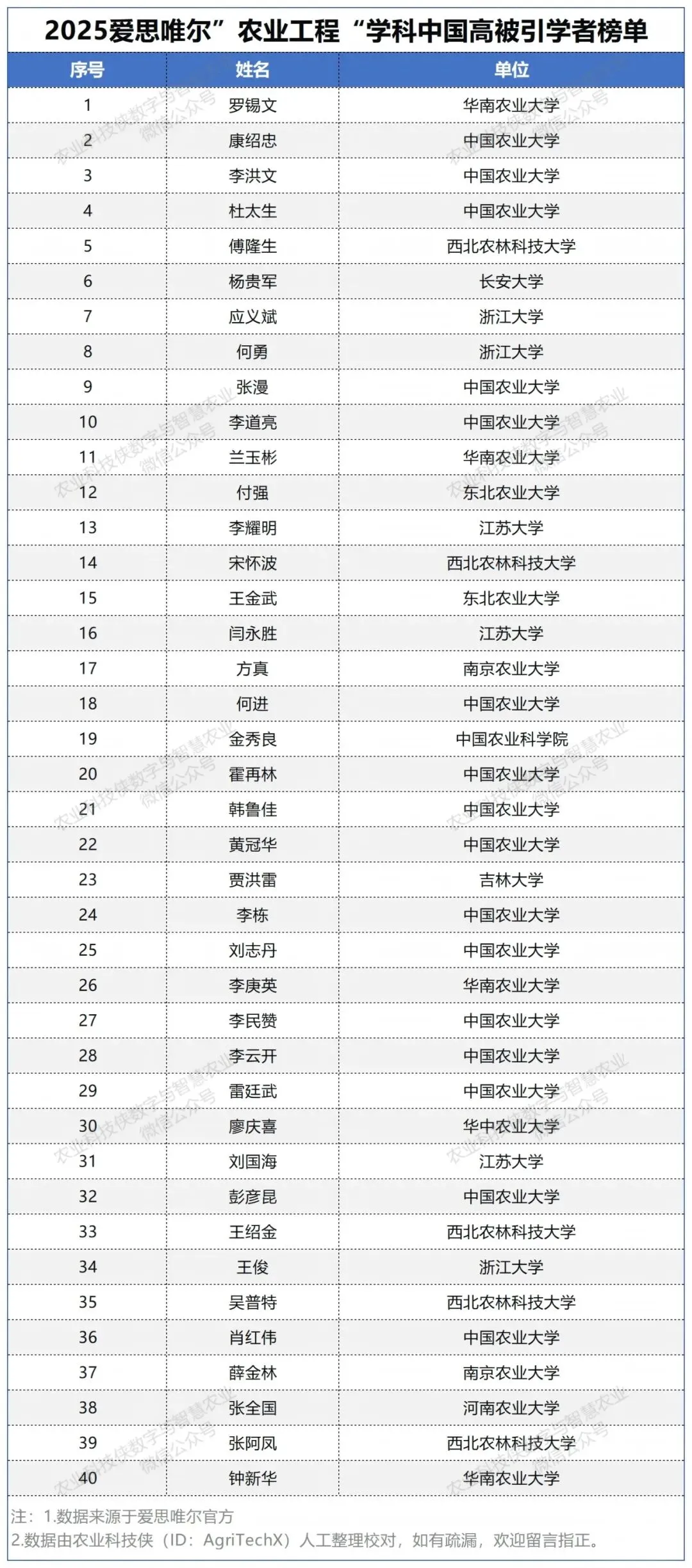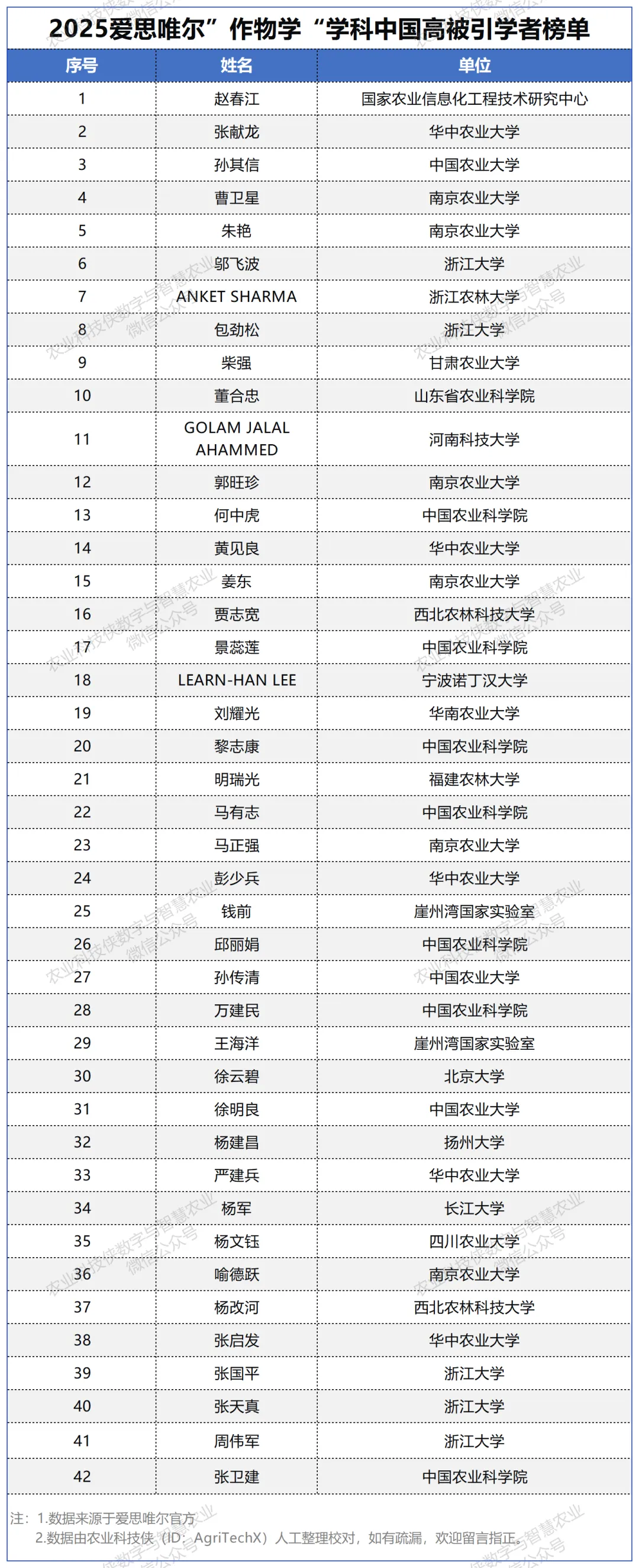 其中农业工程学科40人、作物学学科42人入选,具体名单如下。