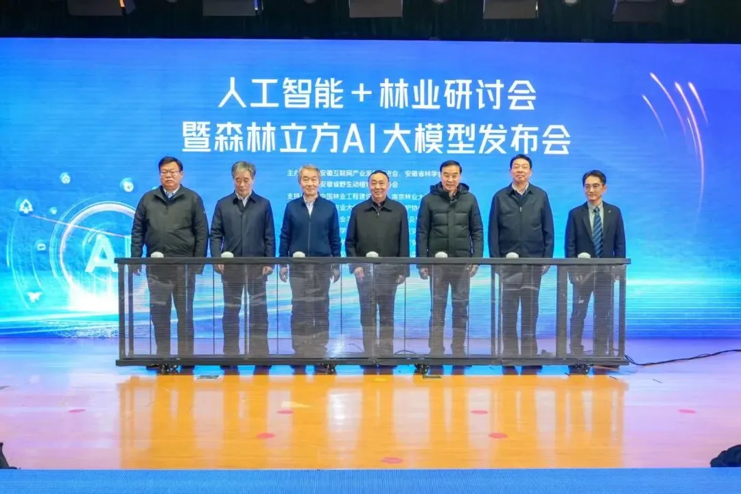 本次盛会以“智赋林业·绿绘未来”为核心主题,紧扣国家“人工智能+”行动部署与安徽省数字经济与实体经济融合发展要求,分为研讨会与发布会两大环节。它既是林业领域科技创新成果的集中展示平台,也是政、企、校、研多方协同合作的重要交流平台。中国林业工程建设协会理事长刘国强、安徽林学会理事长邱辉等行业领导出席会议并发表致辞。中国工程院院士、南京林业大学原校长曹福亮通过现场连线,对人工智能与林业深度融合的重要性作出深刻阐释,肯定了“森林立方”AI大模型的开创意义。
