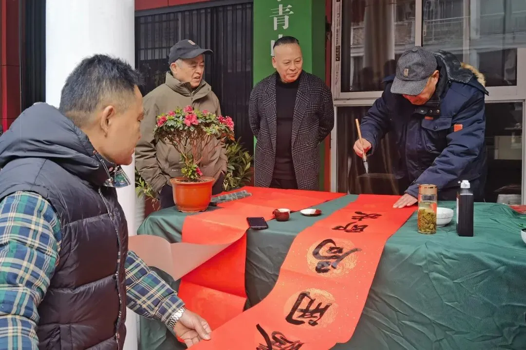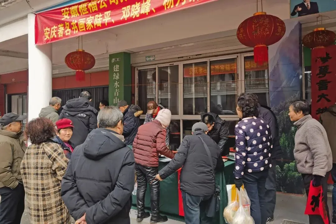 社区居民们或围站桌旁驻足观赏,或挑选心仪的春联,拿到作品的居民们脸上洋溢着幸福笑容,纷纷表示手写春联更有年味、更暖人心。安庆市人大原副主任刘飞跃、安庆市政协原副主席黄杰、安庆市中级法院原院长黄菊旺、安庆市文联原副主席姚岚,安庆市老专家老教授联合会主席王克艮、安徽榧福生态农业公司安庆运营中心负责人姚柏林及联合会部分会员亲临现场,与居民们共赏笔墨风采,同迎新春佳节。
