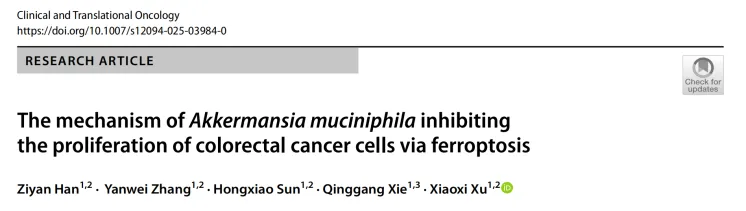 (3)推进 Akk 菌代谢物从体外实验向动物模型及人体临床试验转化,验证其在体内的抑癌效果与安全剂量;鉴定代谢物中核心活性成分并实现分离纯化、规模化制备,为功能食品或生物制剂开发奠定基础;深化铁死亡及关联信号通路的分子调控网络解析;探索代谢物与现有临床治疗手段的协同作用,优化结直肠癌联合治疗方案;结合个体肠道菌群特征,开发个性化微生态调控策略;推动食品科学、微生物学与医学跨领域合作,挖掘更多肠道益生菌在癌症防治中的应用价值。
