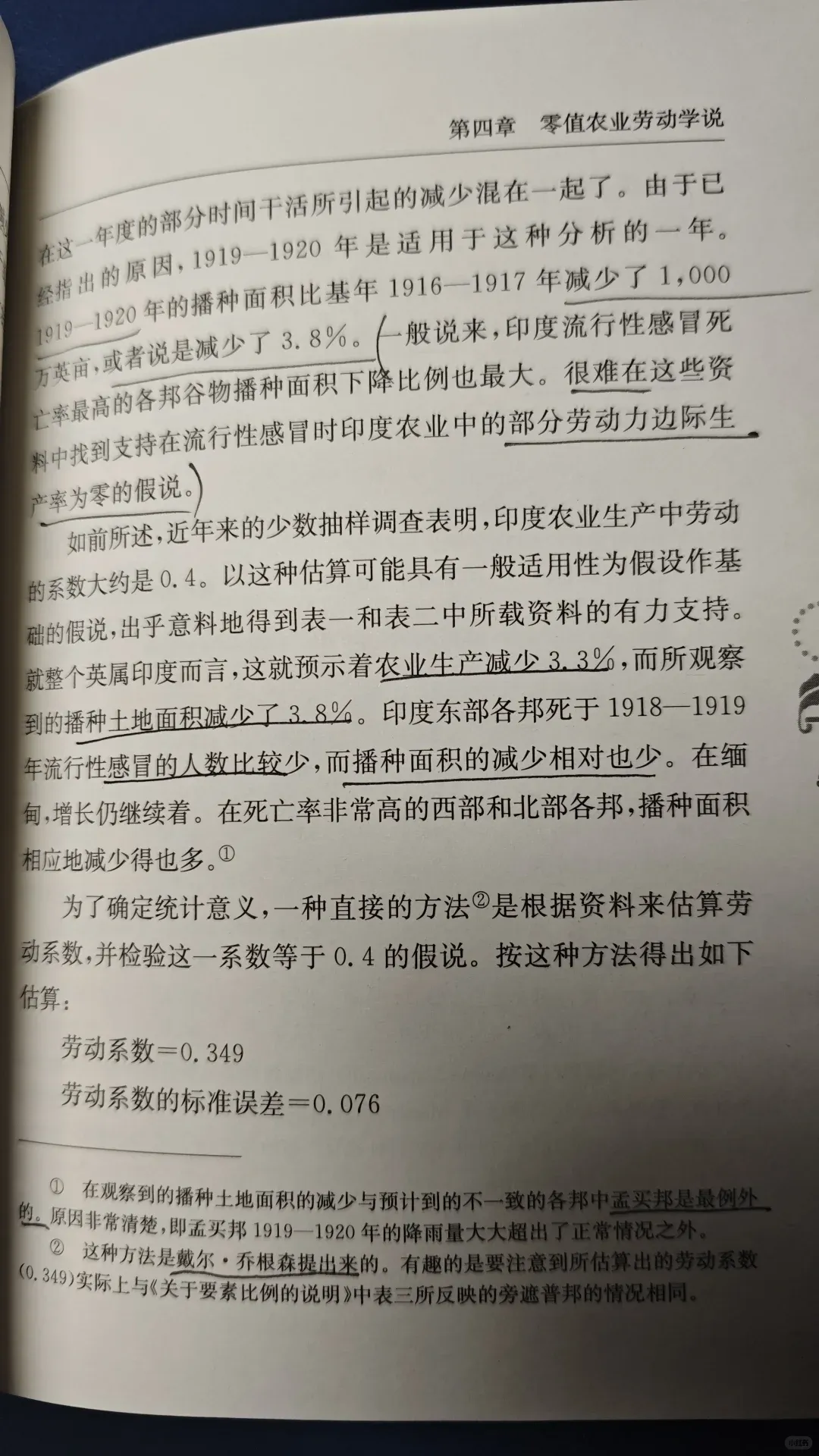 “结论是贫穷社会中部分农业劳动力的边际生产率为零的学说是一种错误的学说。”