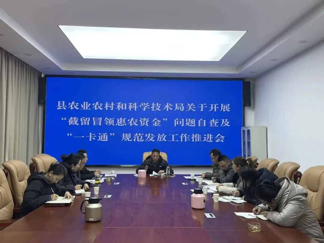 会议首先就“截留冒领惠农资金”问题自查及“一卡通”规范发放工作推进情况进行调度。会议简要听取了局财务、农业技术推广、兽医等业务办公室就前期自查工作开展情况的汇报,并对下一步持续深入排查问题、严格落实“一卡通”发放管理要求、确保各项惠农资金安全规范及时兑付到户等工作进行了再强调、再部署。
