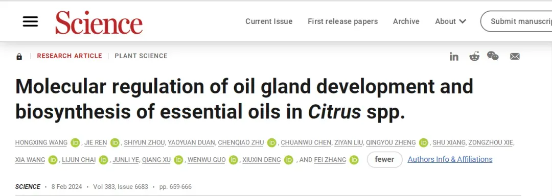 华中农业大学柑橘团队已出站博士后郑庆游(现巴黎萨克雷大学博士后)为该论文第一作者,张飞为通讯作者。华中农业大学园艺林学学院在读博士生周诗韵参与了本研究,耶鲁大学Vivian F. Irish教授为本研究工作提供了重要指导。该研究得到了国家自然科学基金项目(32172541和 32425048)资助。