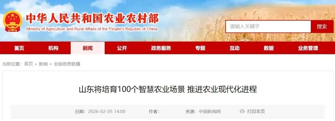 2026年,山东提出“培育100个智慧农业场景”,并写入政府工作报告,作为推进农业现代化、建设“齐鲁粮仓”的重要抓手。该目标已纳入《山东省乡村全面振兴规划(2025—2027年)》和省委一号文件,与建设小麦人工智能育种平台、布局未来农业产业园区等同步推进。
