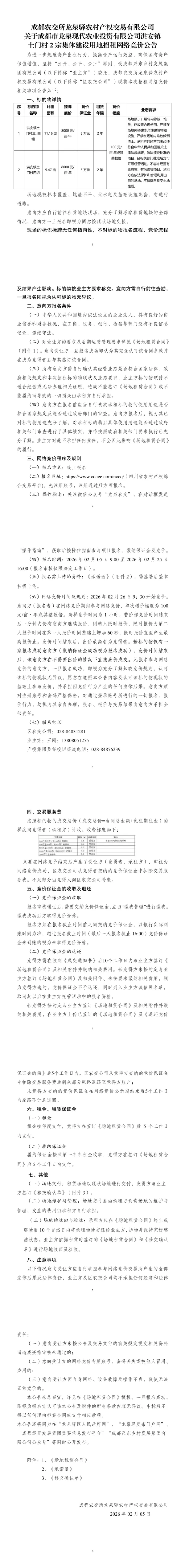 >关于成都市龙泉现代农业投资有限公司洪安镇 土门村2宗集体建设用地招租网络竞价公告