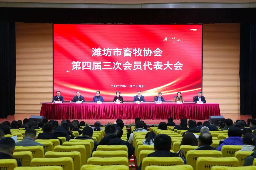 2026年1月29日,潍坊市畜牧协会第四届三次会员代表大会暨畜牧业数智化发展论坛在山东畜牧兽医职业学院胜利召开。大会由潍坊市畜牧业发展中心、山东畜牧兽医职业学院指导,潍坊市畜牧协会主办,潍坊国家农综区产教联合体、山东现代畜牧产教融合共同体、山东省科技特派员潍坊市肉鸭产业服务团、山东省家禽产业技术体系疫病防控团队、山东省生猪产业技术体系生产与环境控制团队、山东省牛产业技术体系疫病防控团队、山东省羊产业技术体系创新团队、山东省生猪产业技术体系潍坊综合试验站、山东省职业教育“ 技能大师”秦立廷工作室、山东省职业教育“ 技能大师”李明勇工作室等单位协办。