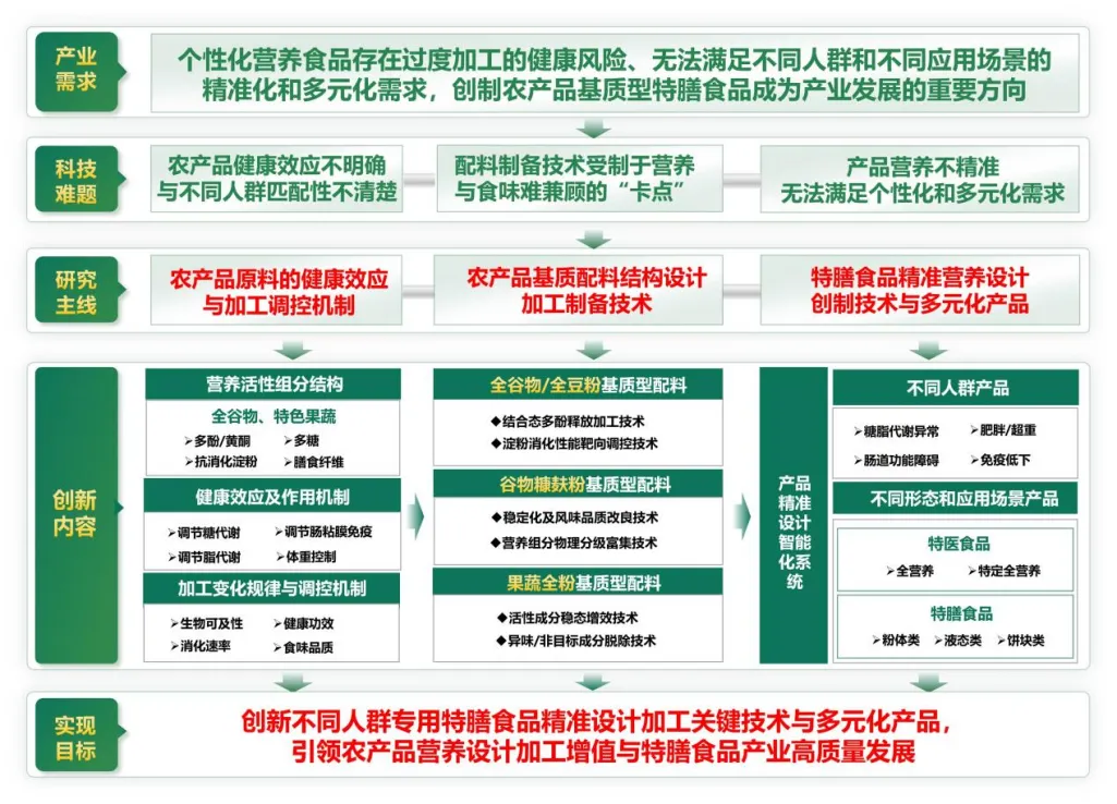 时代生物作为核心参与单位,在《农产品基质特膳食品精准加工关键技术与产业化》项目中充分发挥在健康、美容饮品代加工领域的技术沉淀,深度参与关键技术研发与产业化落地。这项成果瞄准精准营养学术前沿和特殊人群专用食品个性化定制的产业需求,克服了个性化营养食品设计创制面临的农产品原料健康效应不明确、与特殊人群营养需求的匹配性不清楚、基质型配料制备技术难以兼顾营养与味道的“卡点”,攻克了产品营养不精准、无法满足个性化和多元化需求等科技难题。