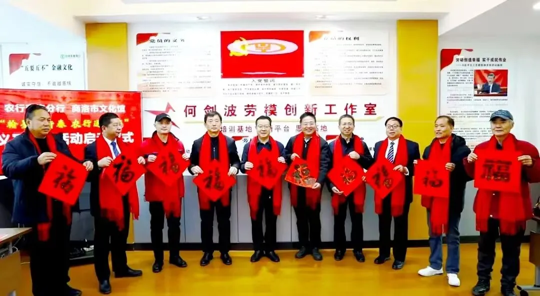 2月4日,由农行商洛分行和商洛市文化馆共同举办的“翰墨迎新春,农行送祝福”义写春联活动在农行商洛分行劳模创新工作室隆重启动。商洛市委理论讲师团副团长毛俊、商洛市文化馆馆长王书亚出席活动启动仪式,商洛市文联副主席闵朋利讲话,农行商洛分行党委副书记、副行长、工会主席狄友青致辞,农行商洛分行劳模创新工作室负责人何剑波介绍活动筹办情况及后期推进计划,陕西仓颉艺术研究会副会长、著名书法家张源昌代表参加义写活动的书法家发言,农行商洛商州支行党委书记、行长曹晓勇主持活动启动仪式。