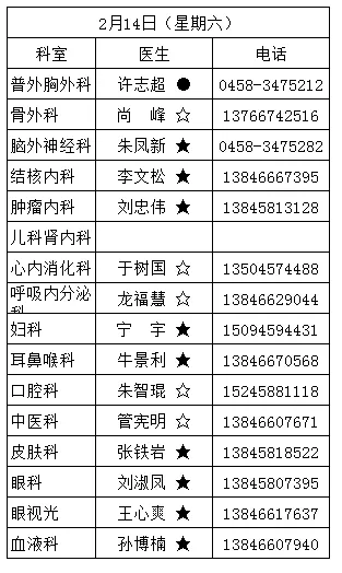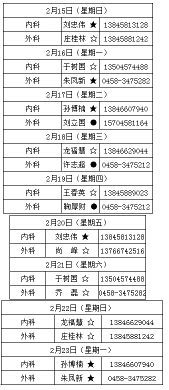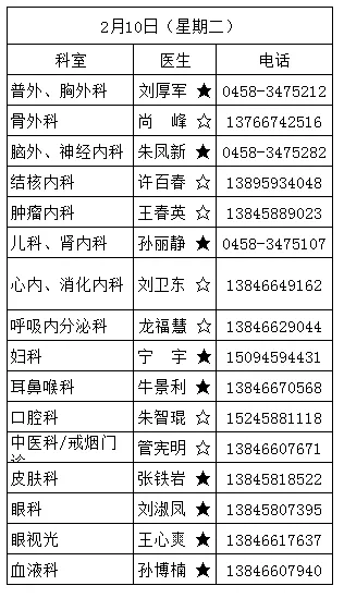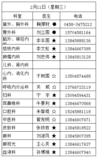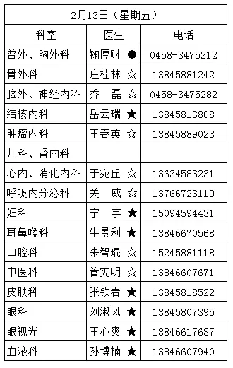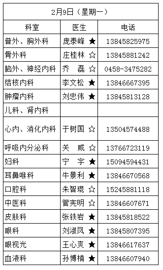 黑龙江省林业第二医院2月9日—2月23日医生出诊信息