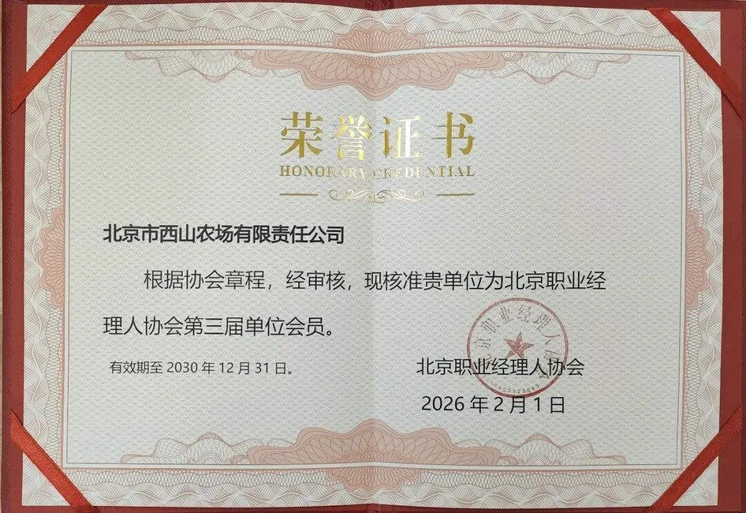 北京职业经理人协会是推动职业经理人队伍建设和行业规范发展的重要行业组织,在职业经理人培养、评价与交流等方面具有较高权威性。此次获评“农业经理人之家”,充分体现了西山农场在农业经营管理、人才队伍建设及规范化运行方面取得的积极成效。