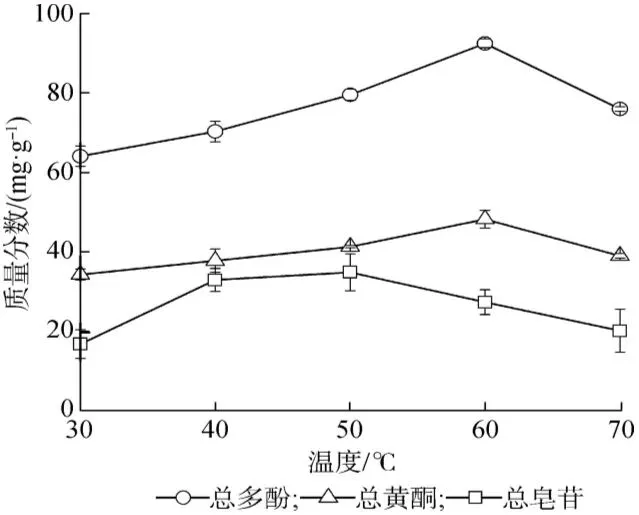 图 4 干燥温度对皂角刺中活性成分的影响(干燥时间 210 min)