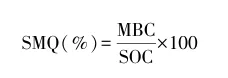 式中,SMQ(Soil Microbial Quotient)为土壤微生物熵,MBC土壤微生碳生物量含量,SOC为有机碳含量。