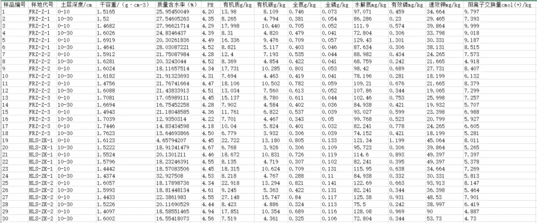 本数据集以表格形式存储,可以在Excel、SPSS、Power Query中调用和处理。通过以上工具的灵活搭配,可覆盖Excel土壤数据从“原始采集→清洗整理→分析建模→报告输出”的全流程需求,既提升效率,又保证数据处理的准确性和可重复性,尤其适合科研场景下的土壤数据分析工作。为土壤重金属污染评估、森林土壤碳汇功能评价、城乡梯度土地适宜性评价等提供数据支撑。