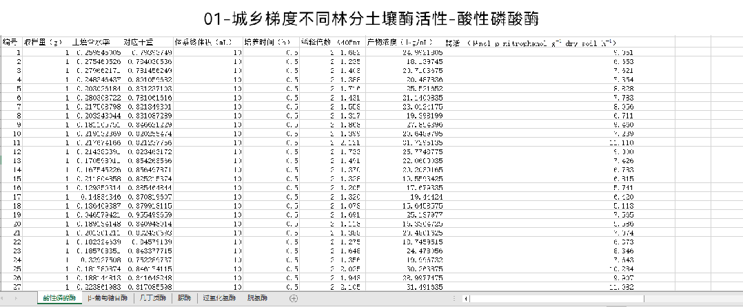 | 2 | 城乡梯度不同林分土壤过氧化氢酶、脲酶、酸性磷酸酶和脱氢酶活性数据集 https://www.forestdata.cn/dataDetail.html?id=bc3e39c8-0636-4966-ab4a-a6f777c9b86c |