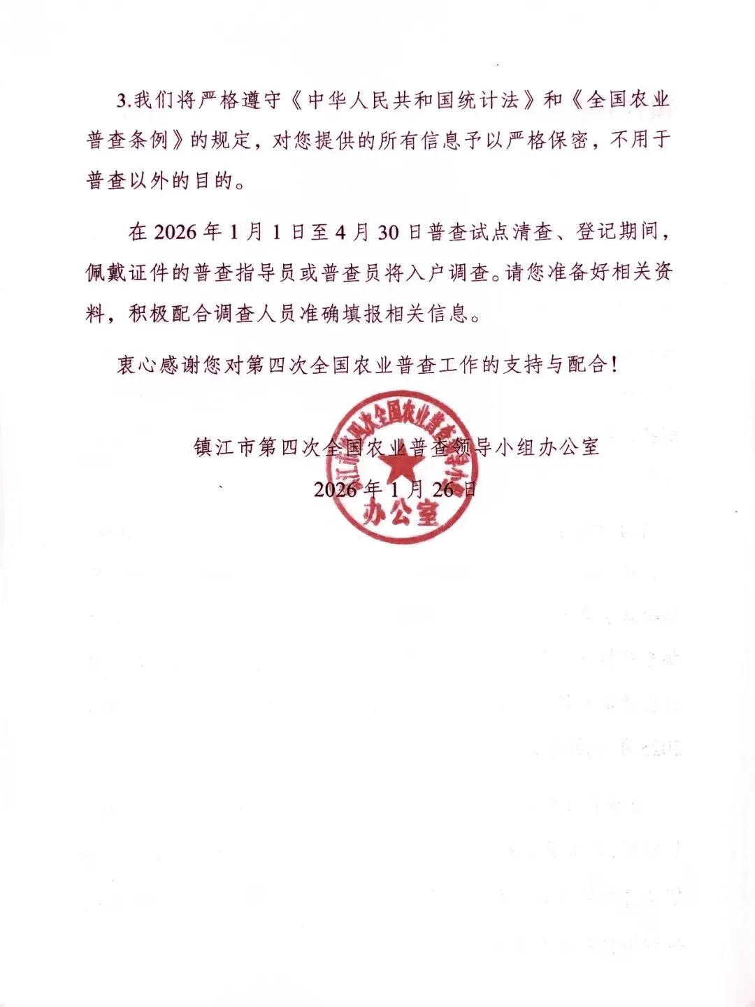 按照《国务院关于开展第四次全国农业普查的通知》(国发〔2025〕9号)要求,为进一步改进和完善农业普查方案,国务院第四次全国农业普查领导小组办公室(以下简称“国务院农普办”)决定开展第四次全国农业普查综合试点工作。