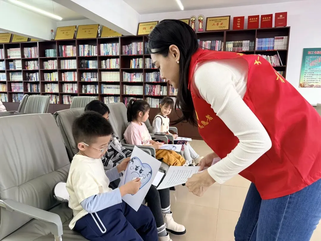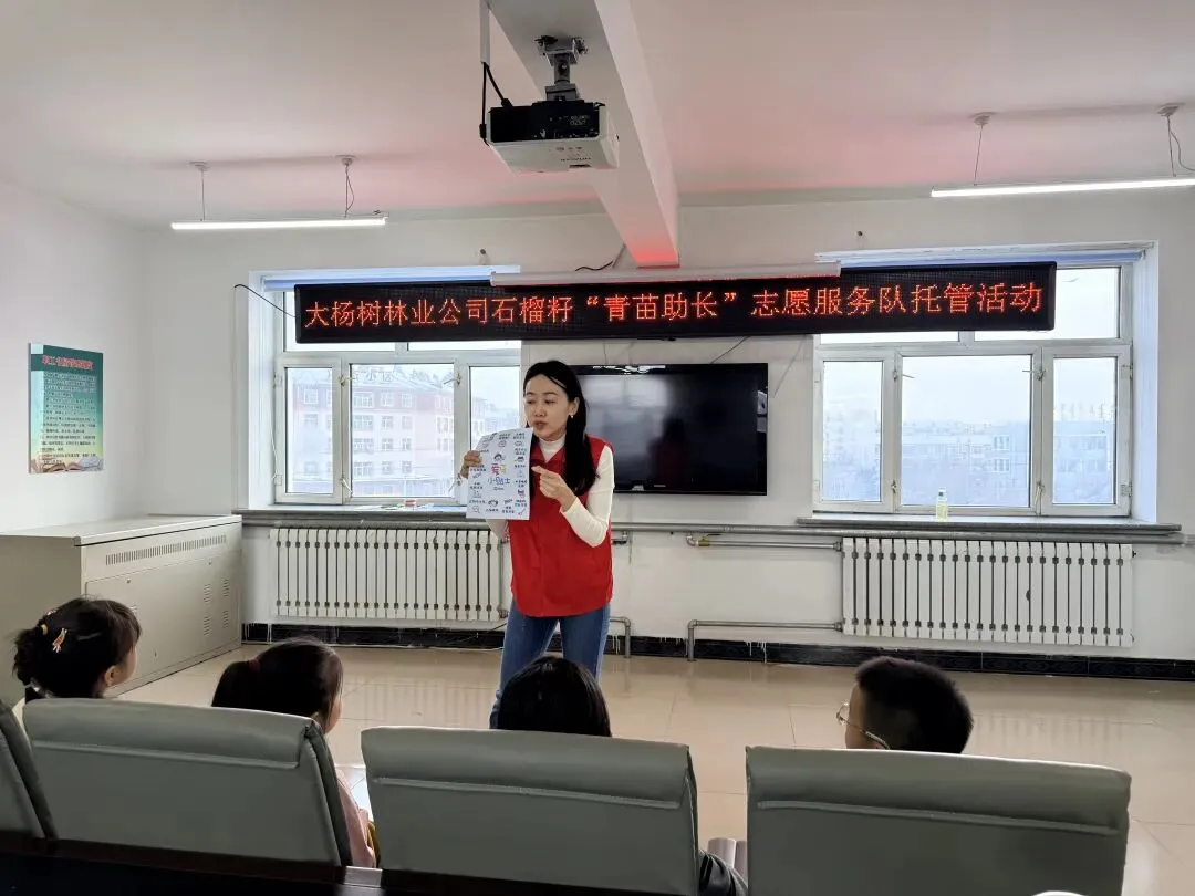 这是公司石榴籽志愿服务队“青苗助长”寒假托管项目的一幕。为解决职工子女假期“看护难”、减轻职工家庭负担,志愿服务队专门开设托管课堂,组织有专长的青年志愿者授课,让职工安心投入工作。拥有口腔执业医师证书的志愿者苏瑶主动请缨,带来了一场生动的口腔科普课。