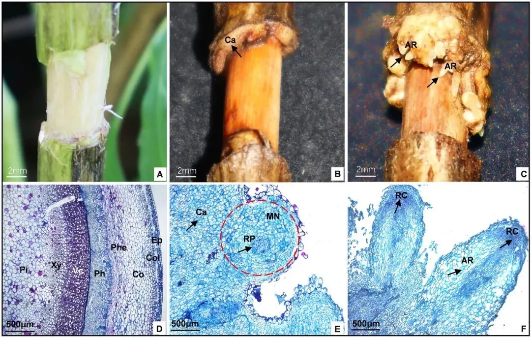 图1 ‘京云冠’(P. rockii ‘Jing Yunguan’)不定根形成过程的形态学与组织学观察