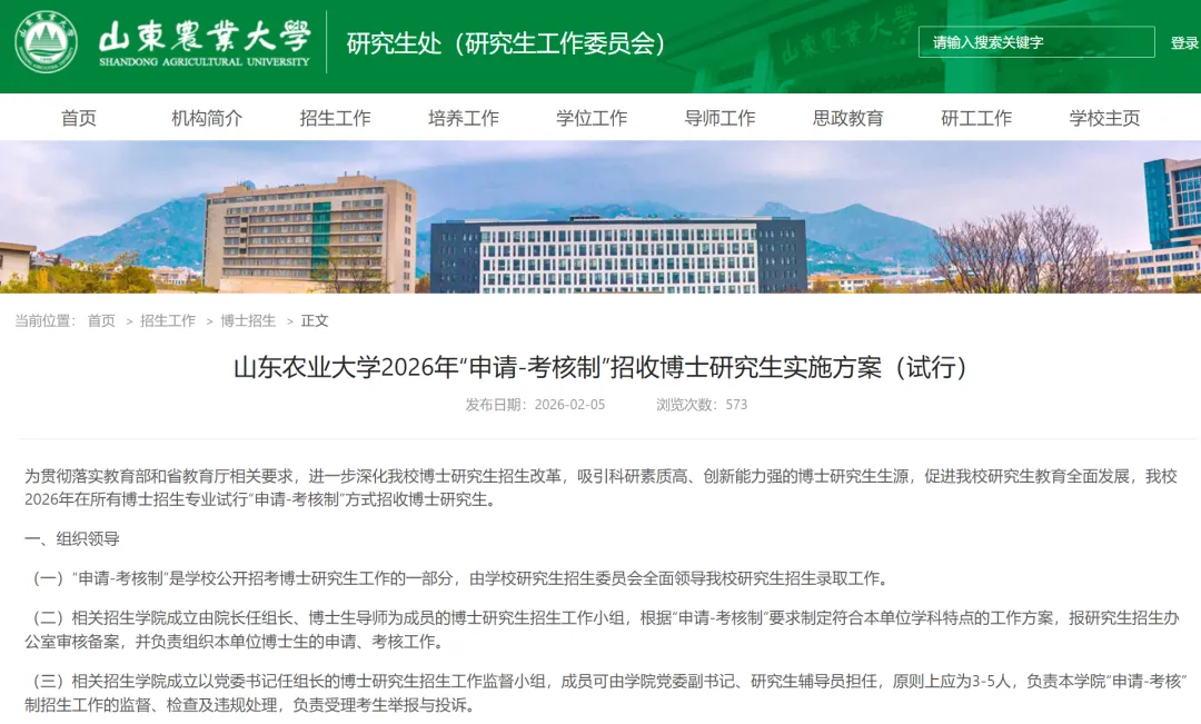 为贯彻落实教育部和省教育厅相关要求,进一步深化我校博士研究生招生改革,吸引科研素质高、创新能力强的博士研究生生源,促进我校研究生教育全面发展,我校2026年在所有博士招生专业试行“申请-考核制”方式招收博士研究生。