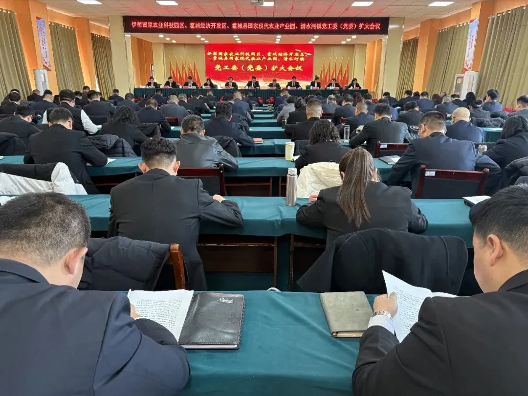 2月6日,伊犁国家农业科技园区、霍城经济开发区、霍城县国家现代农业产业园区党工委、清水河镇党委(扩大)会议顺利召开。会议以习近平新时代中国特色社会主义思想为指导,全面贯彻党的二十大和二十届历次全会精神,完整准确全面贯彻新时代党的治疆方略,系统回顾“十四五”时期发展成就,总结2025年各项工作,擘画“十五五”时期宏伟蓝图,部署2026年重点工作任务,为在中国式现代化霍城实践中推动“三园一镇”融合发展迈上新台阶凝聚共识、指明方向。