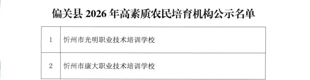 偏关县农业农村局关于2026年高素质农民培育机构审定结果的公示