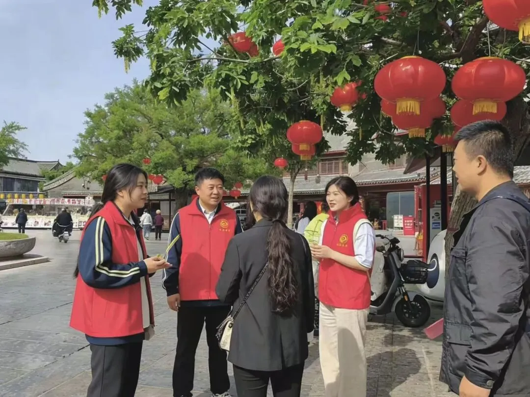 实践队登临光岳楼,在讲解员的引导下,细致观察全木榫卯结构的营造技艺,解读檐角风铃、碑刻题咏中的历史信息,感受这座650余年古建承载的黄河与运河文明交融印记。随后,成员们以随机访谈的形式与来自各地的游客交流,记录他们对光岳楼历史价值的认知以及对黄河文化传播的建议。访谈中,不少游客表示:“光岳楼不仅是建筑奇迹,更是鲁西黄河文化的活化石。”这让成员们更深刻地体会到文化地标在公众认知中的传播作用。