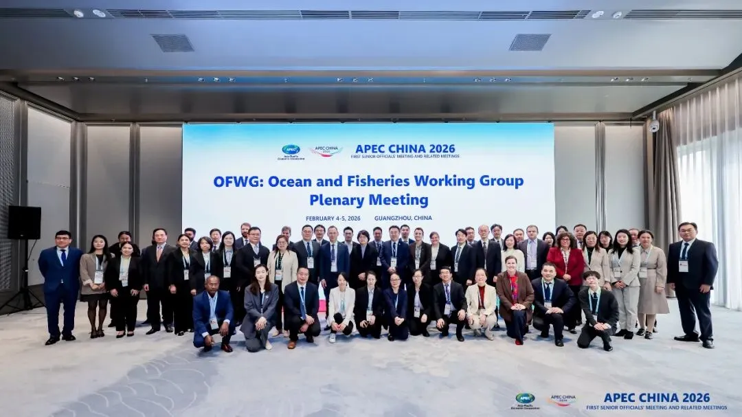 2026年2月4-5日,第25次APEC海洋与渔业工作组(OFWG)会议在广州成功举办。来自澳大利亚、加拿大、智利、中国、中国香港、日本、韩国、新西兰、巴布亚新几内亚、秘鲁、菲律宾、俄罗斯、中国台北、泰国、美国、越南等16个APEC经济体以及蒙特利湾水族馆、中国海洋发展基金会等社会组织代表共70余人参会。中方代表团由自然资源部国际合作司副司长王安涛,农业农村部渔业渔政管理局副局长孙海文,自然资源部南海局副局长王宏斌,自然资源部第三海洋研究所所长(APEC海洋可持续发展中心主任)张海峰、副所长陈彬,以及来自海洋三所(APEC海洋可持续发展中心)、南海局、海洋一所、国家海洋环境预报中心、自然资源部海岛研究中心等单位代表共28人组成。