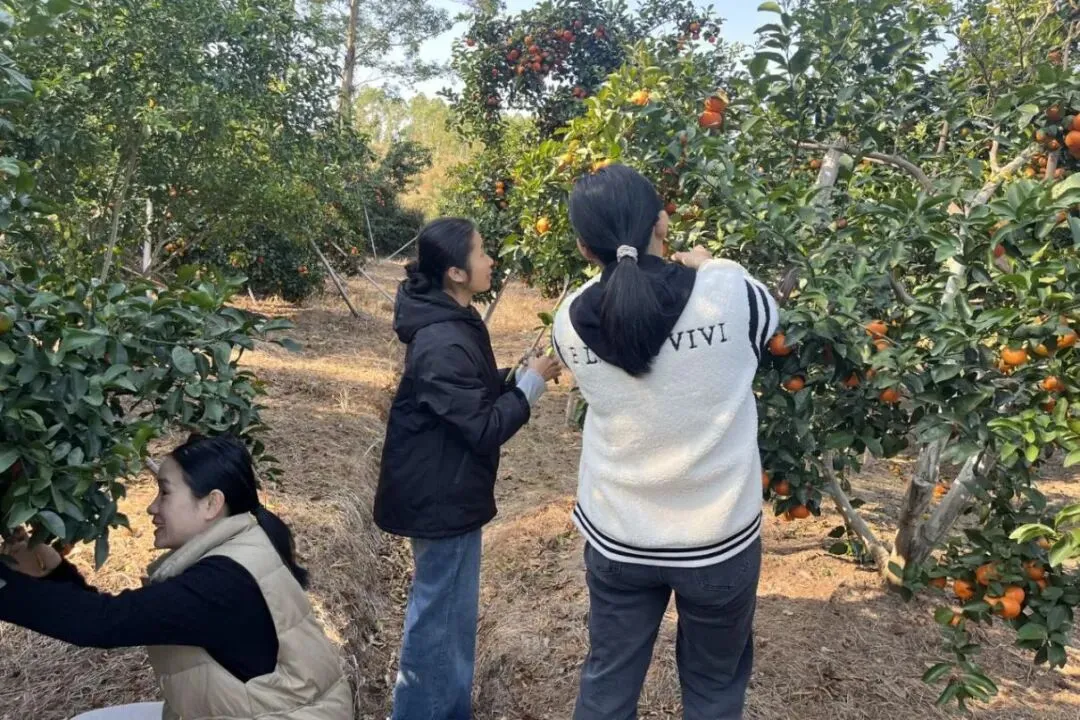 ▲县检测站工作人员在水果生产基地抽取砂糖橘样品