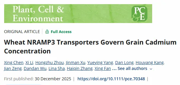 四川农业大学小麦研究所王益课题组在植物科学领域著名期刊《Plant, Cell & Environment》在线发表了题为“Wheat NRAMP3 transporters govern grain cadmium concentration”的研究论文,系统揭示了小麦NRAMP3基因调控籽粒镉积累的生物学功能,为小麦籽粒低镉育种提供了基因源和理论基础。