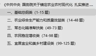 中央1号文件,历来是考查的重点,这次中央一号文件,分成5个部分编写