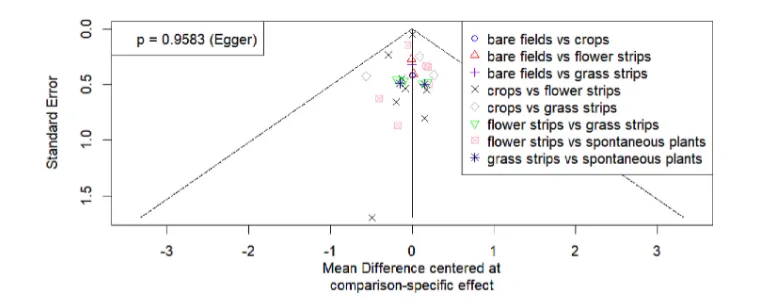 图 5 天敌丰度相关数据集的漏斗图(无发表偏倚影响)