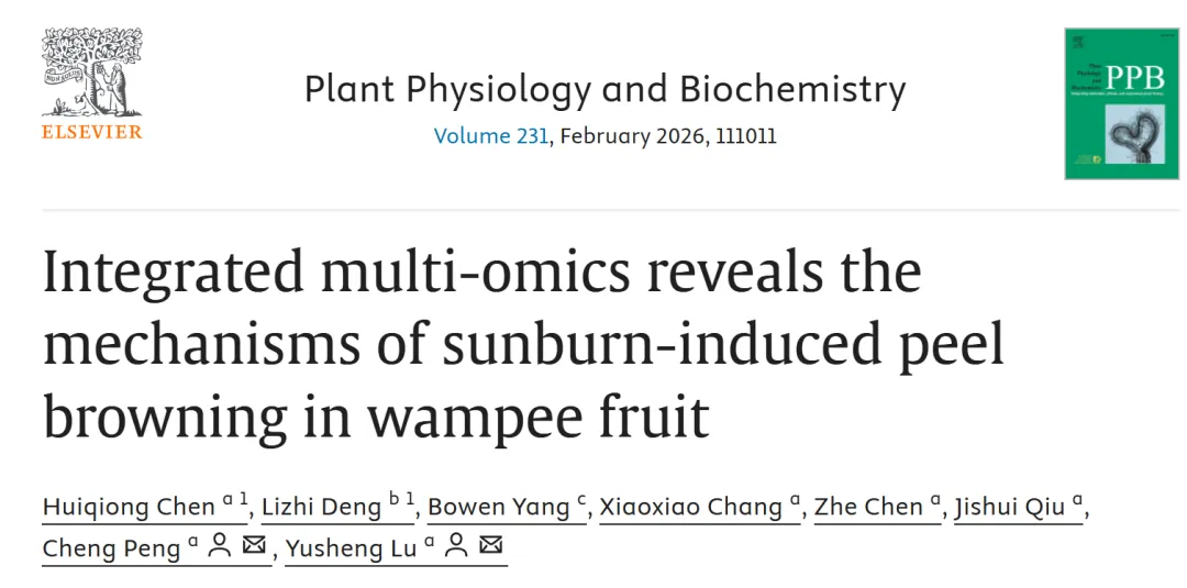 近日,广东省农业科学院果树研究所优稀水果研究团队在《Plant Physiology and Biochemistry》期刊上发表了题为“Integrated multi-omics reveals the mechanisms of sunburn-induced peel browning in wampee fruit”的研究成果。本论文第一完成单位为广东省农业科学院果树研究所,第一作者为果树所陈慧琼博士,通讯作者为陆育生研究员与彭程副研究员。