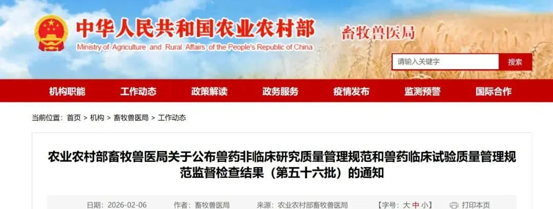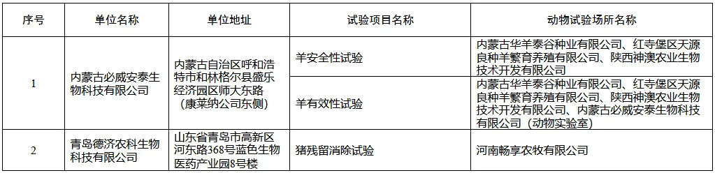 为规范兽药研究活动,根据《兽药管理条例》、《兽药非临床研究质量管理规范》、《兽药临床试验质量管理规范》以及监督检查办法和标准,农业农村部畜牧兽医局组织专家对陕西诺威利华生物科技有限公司、内蒙古必威安泰生物科技有限公司、青岛德济农科生物科技有限公司进行了监督检查。经监督检查,陕西诺威利华生物科技有限公司的2个试验项目符合兽药非临床研究质量管理规范(以下简称“兽药GLP”)要求,检查结果已公示。内蒙古必威安泰生物科技有限公司、青岛德济农科生物科技有限公司等2个单位的3个试验项目符合兽药临床试验质量管理规范(以下简称“兽药GCP”)。现将检查结果予以公布(见附件1、2)。